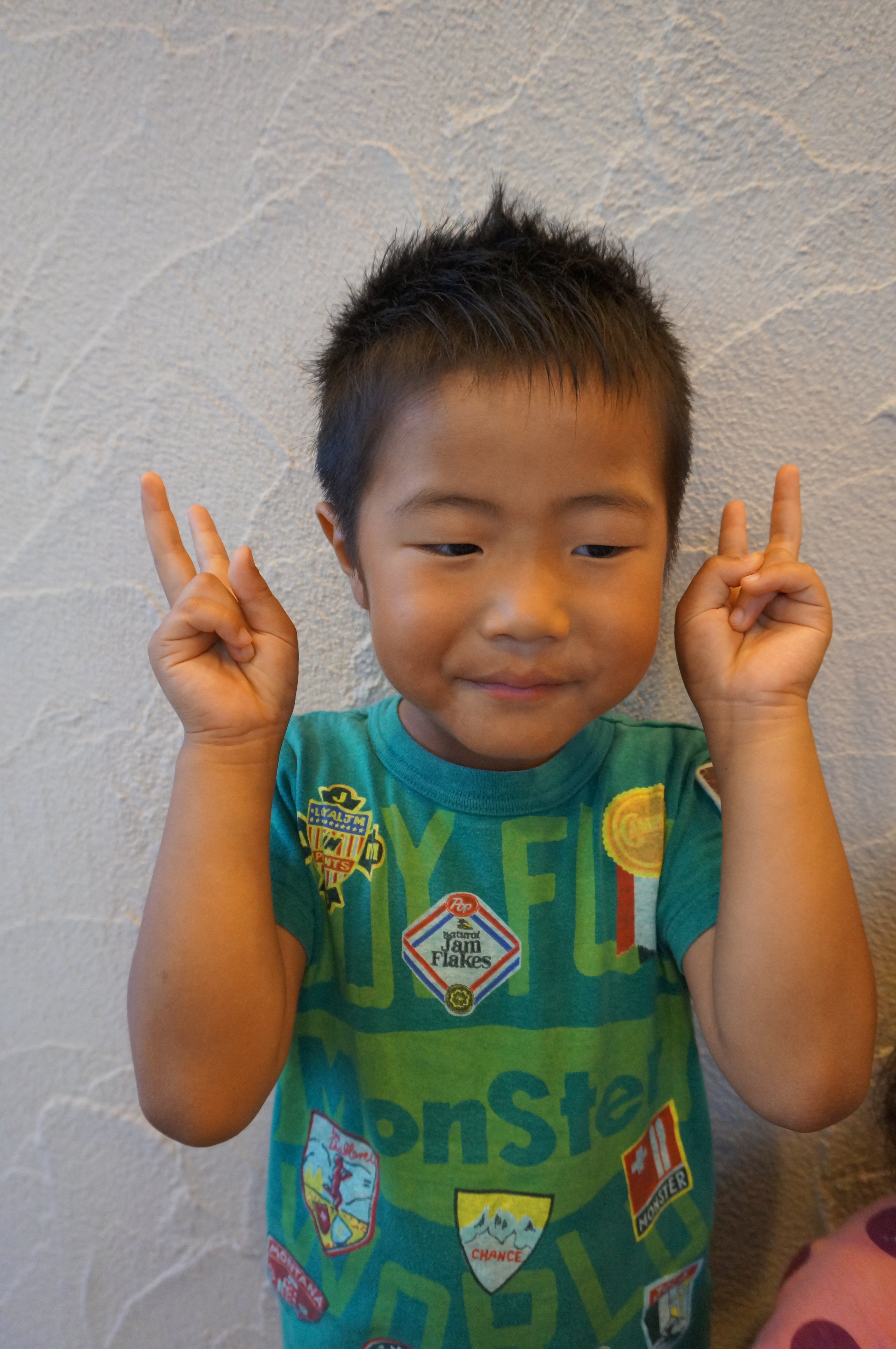 スッキリ短くなってダブルピースのSくん