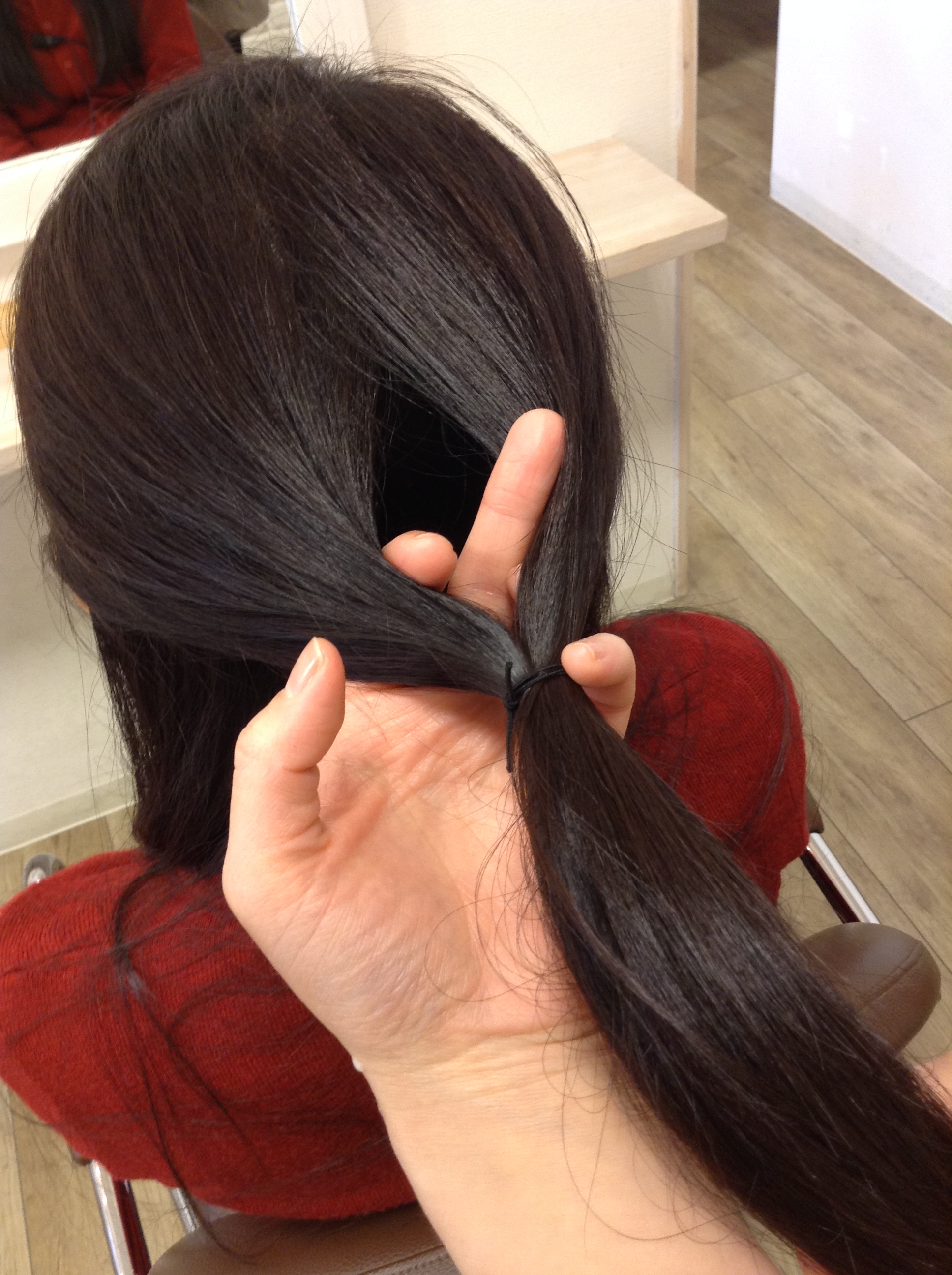 ギュッと奥まで締めて、トップを少し引っ張りふんわりさせたら出来上がり✩