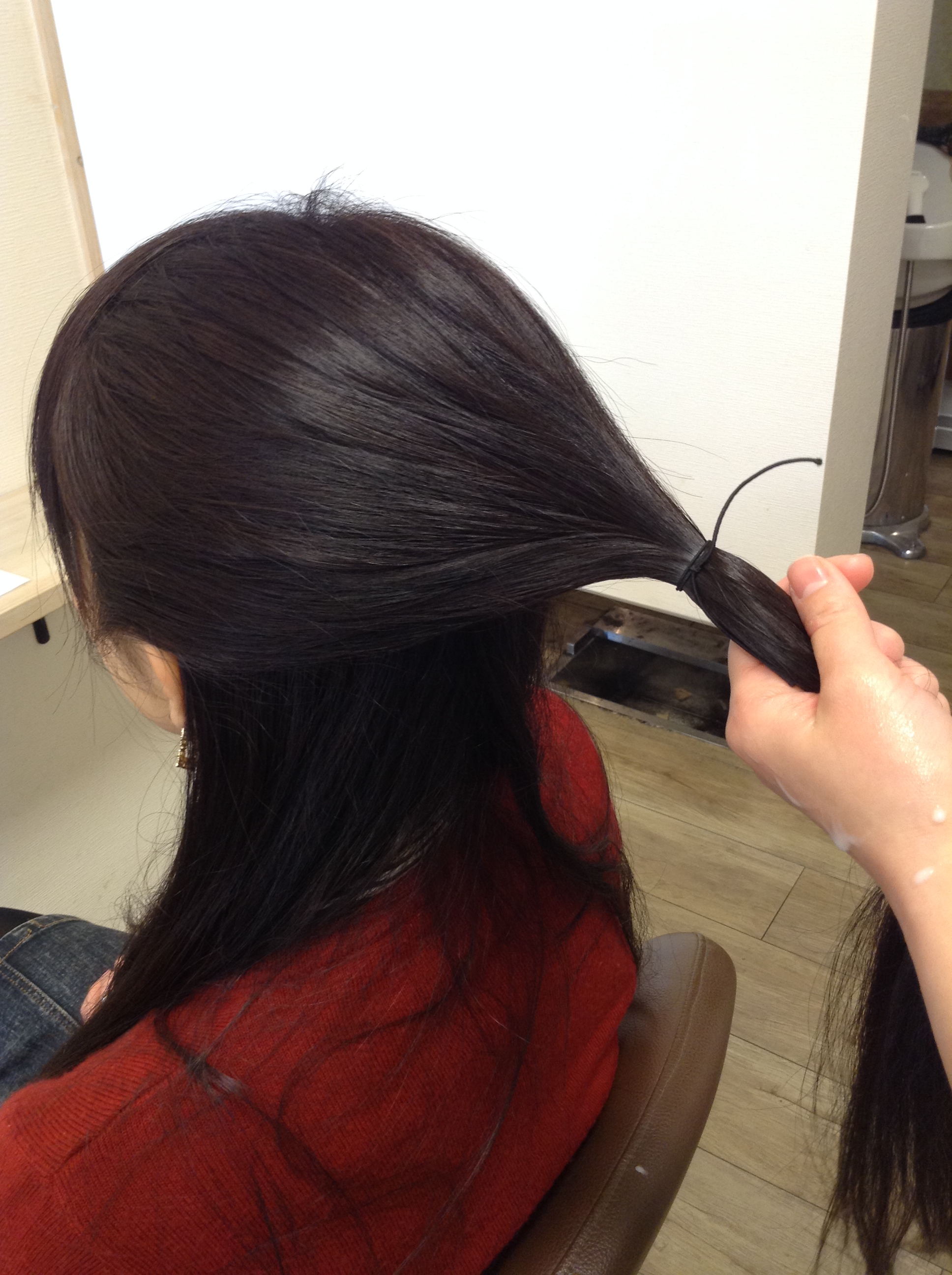 そして、耳から上の毛を束ねます。ちょっと、たるませてしばるのがポイントです✩